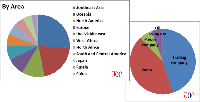 JOE has been carried out a reserves evaluation of oil and gas fields in the projects amounting to 109 in countries and regions for trading companies, banks, electric power companies and oil companies during the past 10 (2005-2015) years.